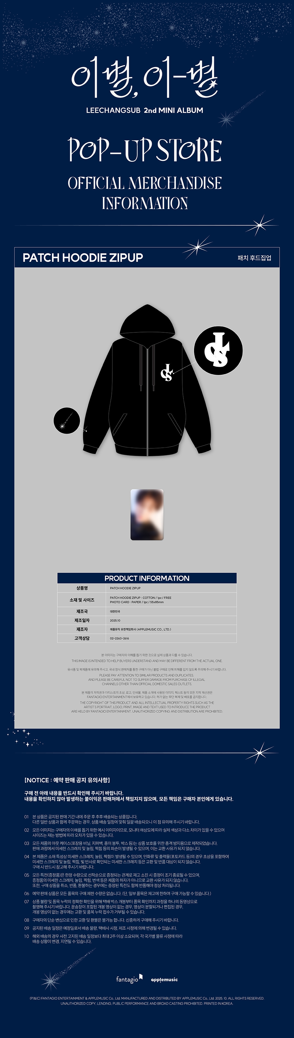 이창섭 - LEECHANGSUB 2nd MINI ALBUM POP-UP MD / 패치 후드집업 (PATCH HOODIE ZIPUP)