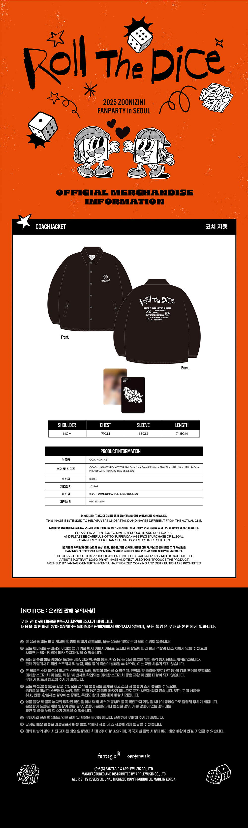 주니지니(ASTRO) - 2025 ZOONIZINI FANPARTY [Roll The Dice] MD / 코치 자켓 (COACH JACKET)