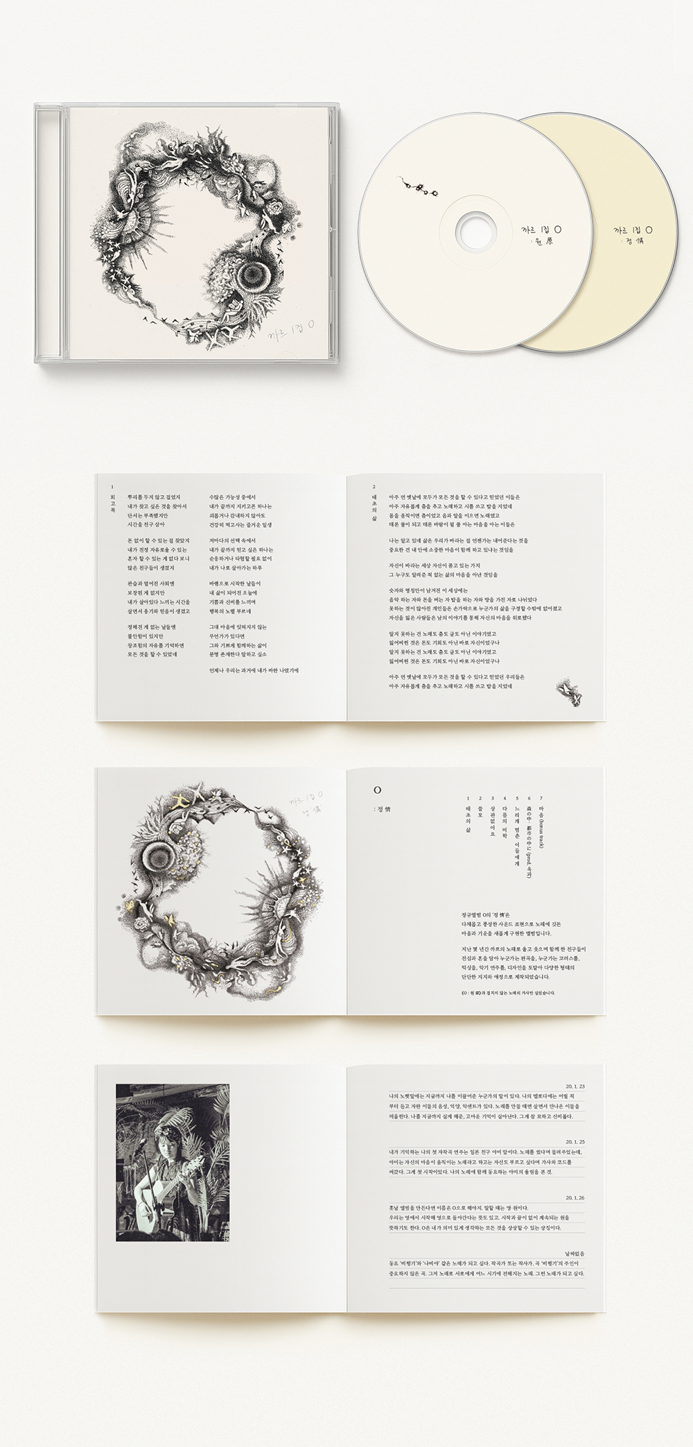 16곡의 같고도 다른 노래를 CD1《O : 원 原》은 원마이크, 동시녹음, 프리템포로 자연스러운 일상 속에서 까르의 노래 원형을 담은 버전으로. CD2《O: 정 情》은 까르의 노래를 애정한 친구들이 우정과 애정으로 작업한 다채로운 편곡 버전으로 구성하였습니다.