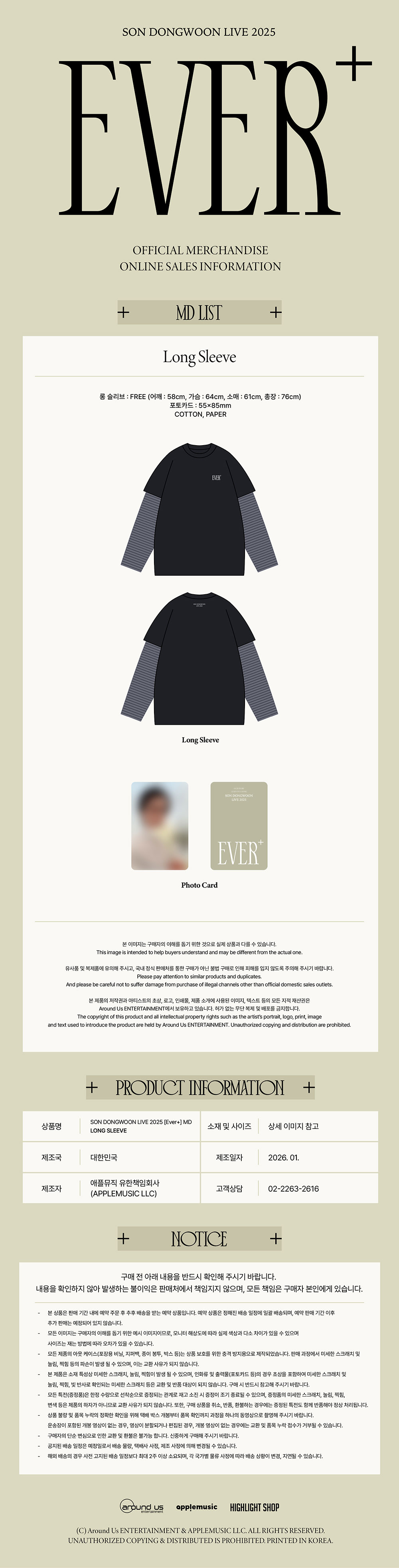 손동운 (SON DONGWOON) - 2025 SOLO CONCERT OFFICIAL MD / 롱 슬리브 (LONG SLEEVE)
