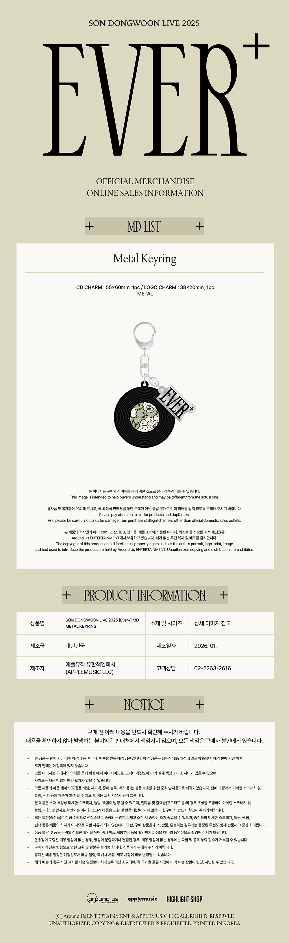 손동운 (SON DONGWOON) - 2025 SOLO CONCERT OFFICIAL MD / 금속 키링 (METAL KEYRING)