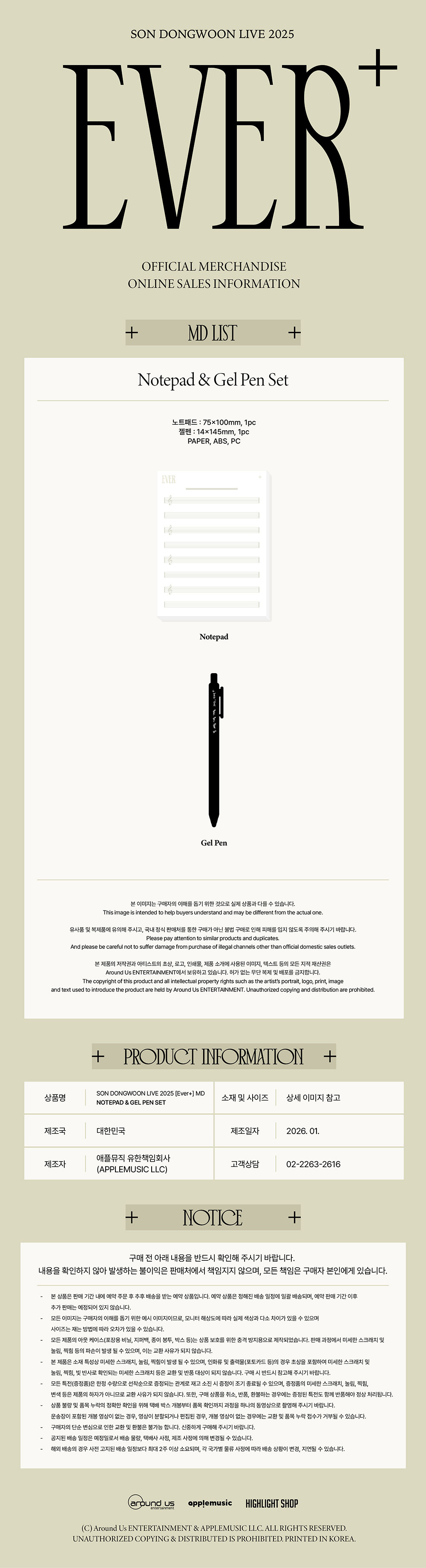 손동운 (SON DONGWOON) - 2025 SOLO CONCERT OFFICIAL MD / 노트 젤펜 세트 (NOTEPAD & GEL PEN SET)