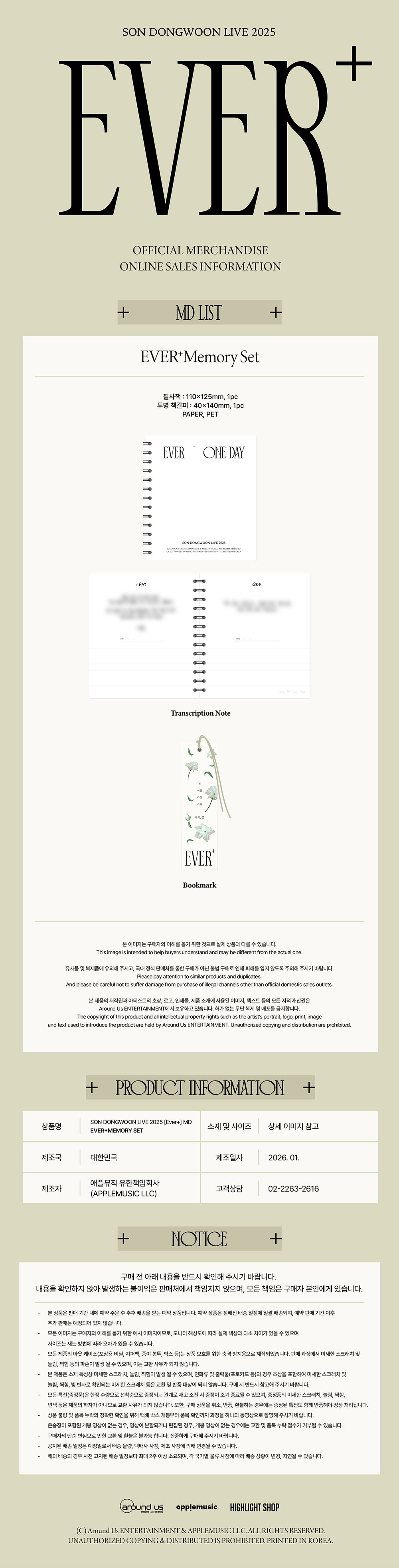 손동운 (SON DONGWOON) - 2025 SOLO CONCERT OFFICIAL MD / 에버 메모리 세트 (EVER MEMORY SET)