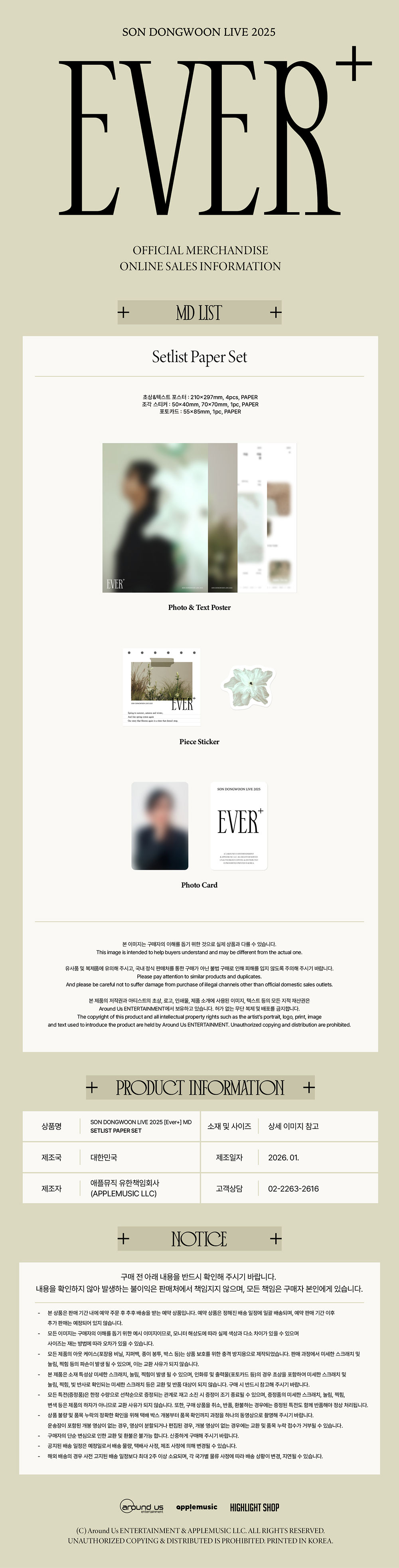 손동운 (SON DONGWOON) - 2025 SOLO CONCERT OFFICIAL MD / 셋리스트 페이퍼 세트 (SETLIST PAPER SET)