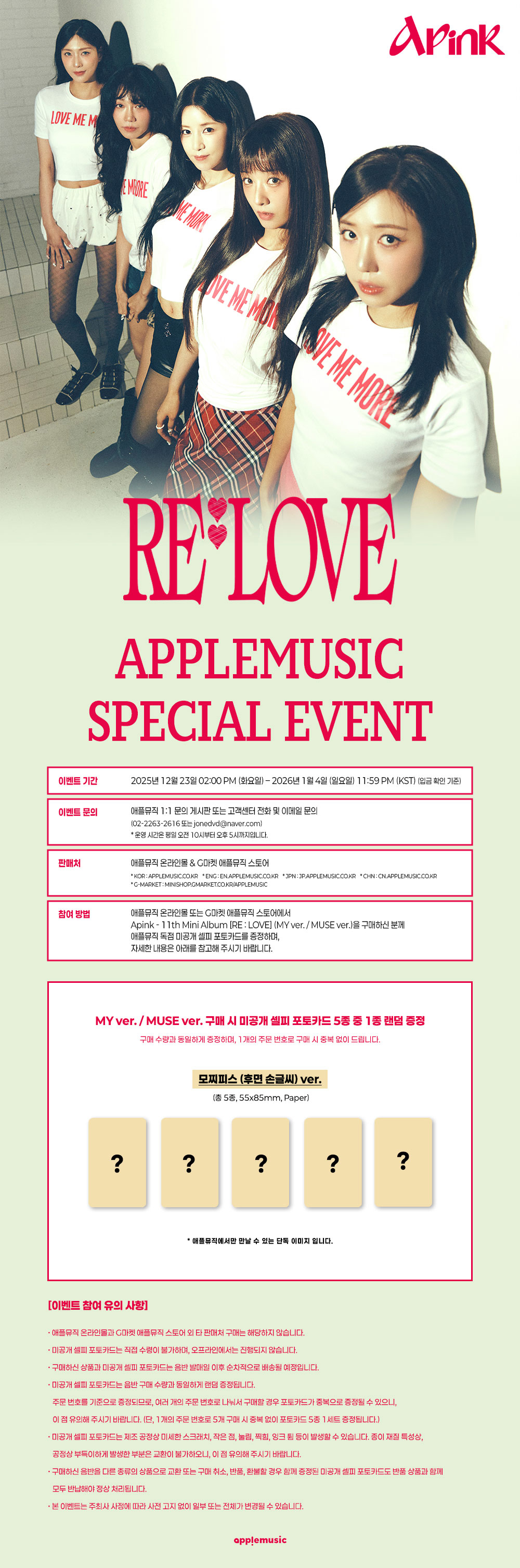 [애플특전][세트/앨범2종] 에이핑크 (Apink) - 11th Mini Album [RE : LOVE]