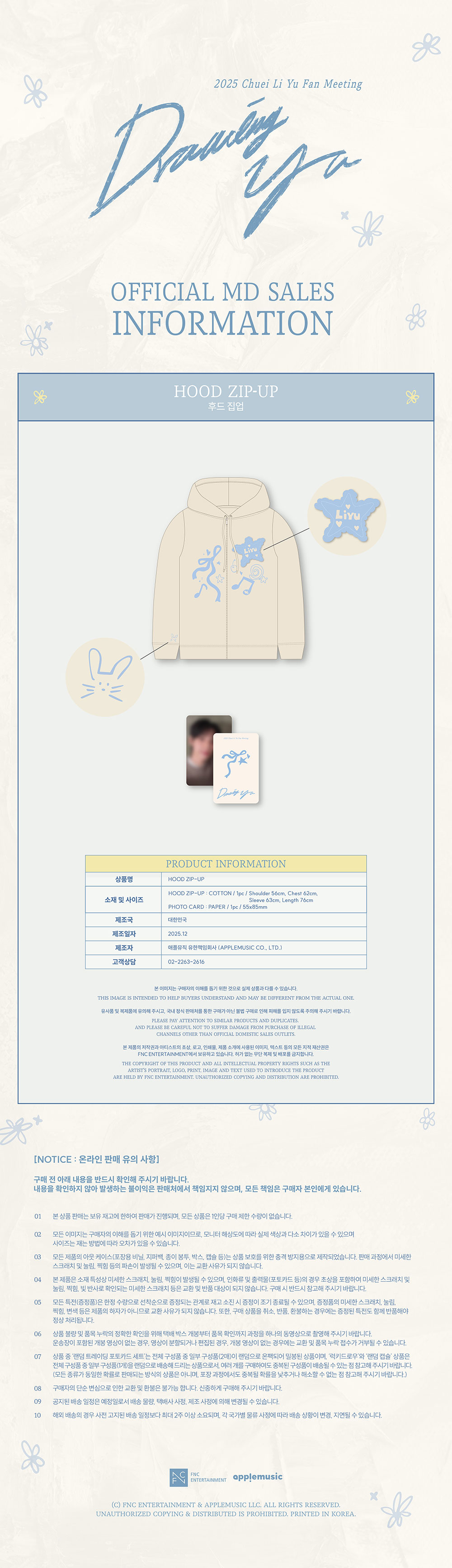 최립우 (CHUEI LI YU) - 2025 Fan Meeting [Drawing Yu] MD / 후드 집업 (HOOD ZIP-UP)