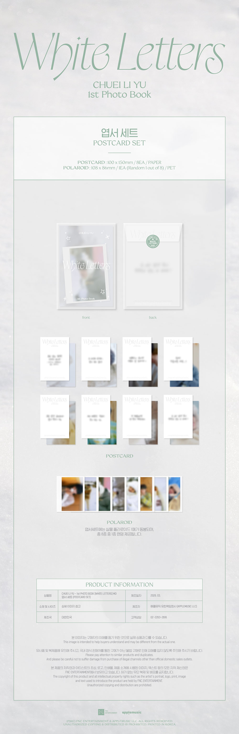 최립우 (CHUEI LI YU) - 1st PHOTO BOOK [WHITE LETTERS] MD / 엽서 세트 (POSTCARD SET)