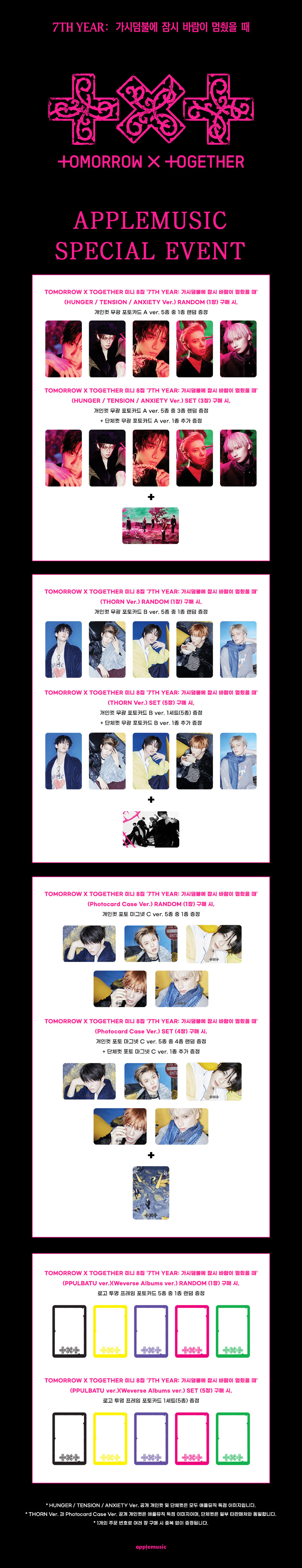 [애플특전][세트/앨범5종] 투모로우바이투게더 (TXT) - TOMORROW X TOGETHER 7TH YEAR: 가시덤불에 잠시 바람이 멈췄을 때(THORN Ver.)