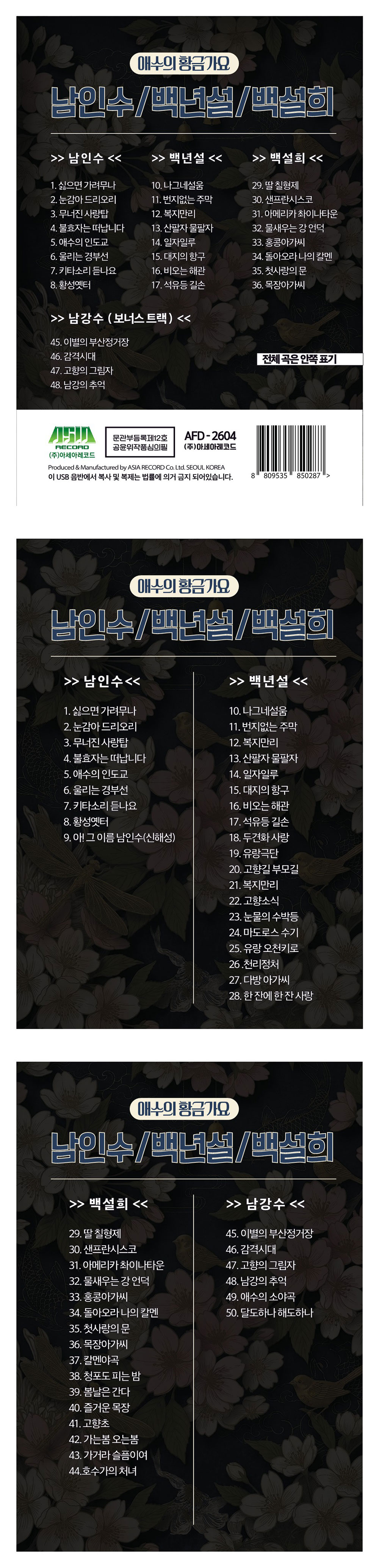 남인수/백년설/백설희 애수의 황금가요 50곡 수록 (USB)
