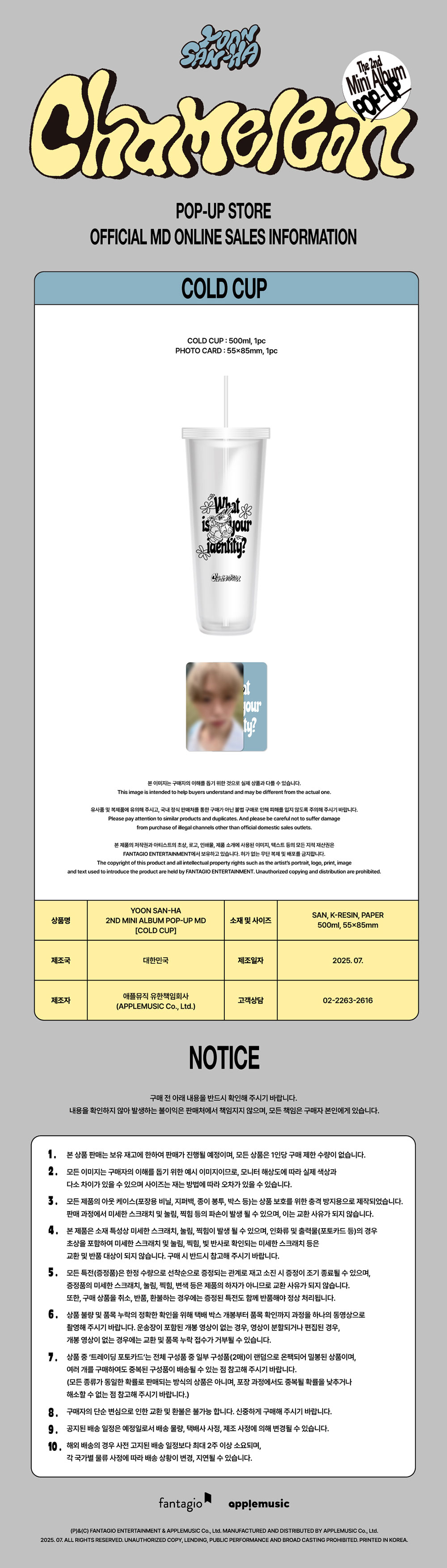 윤산하 (ASTRO) - 2ND MINI ALBUM [CHAMELEON] POP-UP STORE MD / 콜드컵 (COLD CUP)