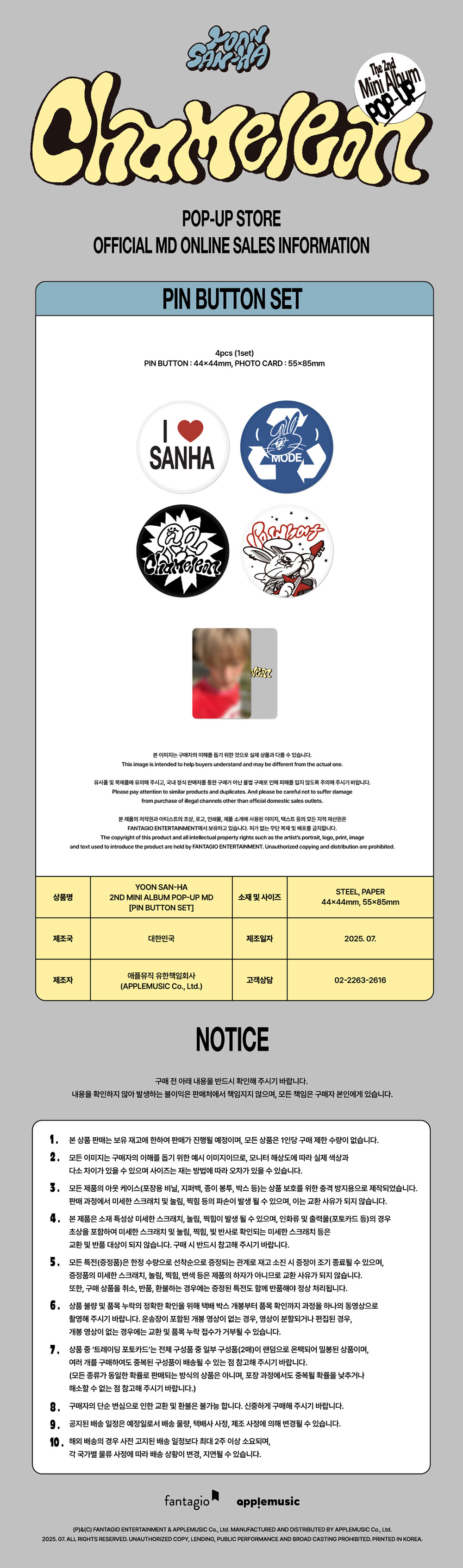 윤산하 (ASTRO) - 2ND MINI ALBUM [CHAMELEON] POP-UP STORE MD / 핀버튼 세트 (PIN BUTTON SET)