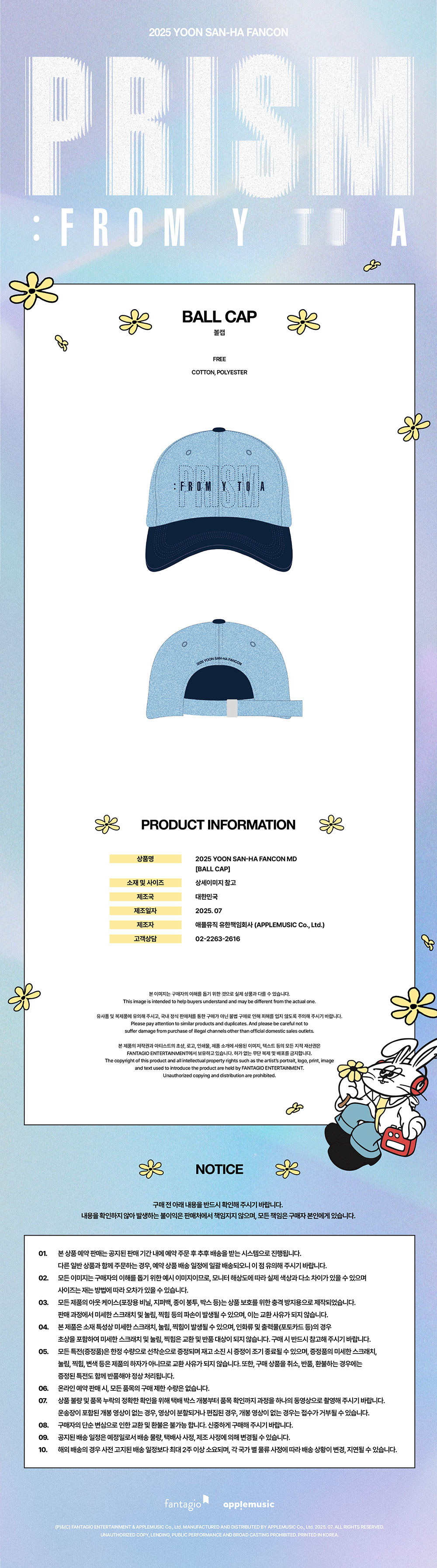 윤산하 (ASTRO) - 2025 YOON SAN-HA FANCON [PRISM : from Y to A] MD / 볼캡 (BALL CAP)