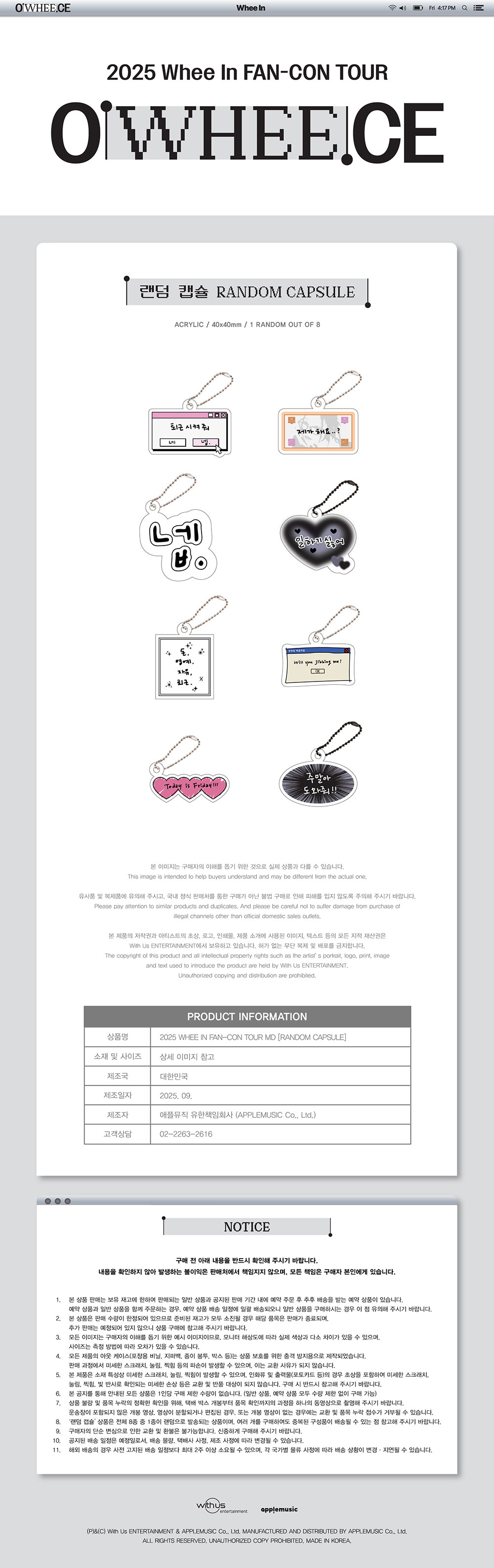 휘인 (Whee In) - 2025 Whee In FAN-CON TOUR [OWHEECE] MD / 랜덤 캡슐 (RANDOM CAPSULE)